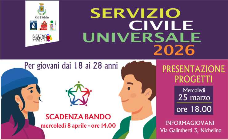 Per giovani di età compresa tra i 18 e i 28 anni. La Città di Nichelino presenterà i suoi progetti mercoledì 25 marzo 2026, alle 18.00 all'Informagiovani