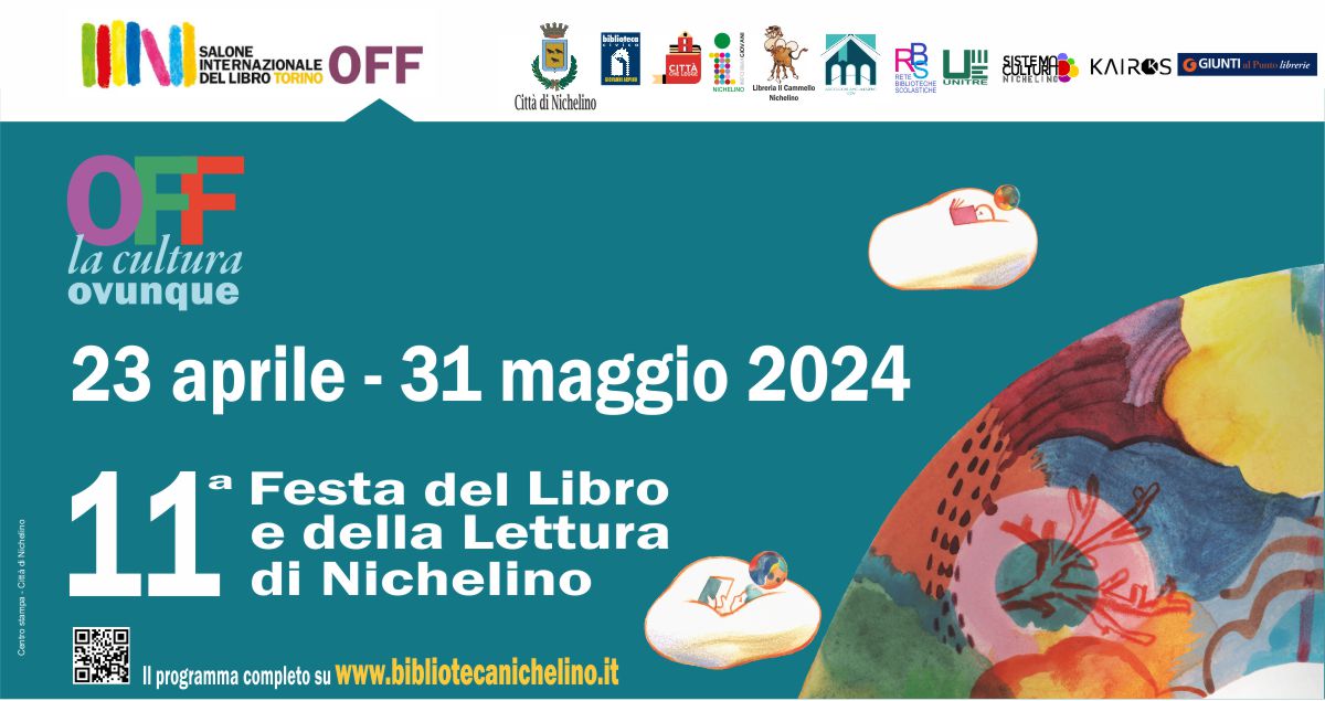 A partire dal 23 aprile e fino al 31 maggio 2024 torna, per l'11° edizione, la Festa del Libro e della Lettura di Nichelino in concomitanza con il Salone Internazionale del Libro OFF.