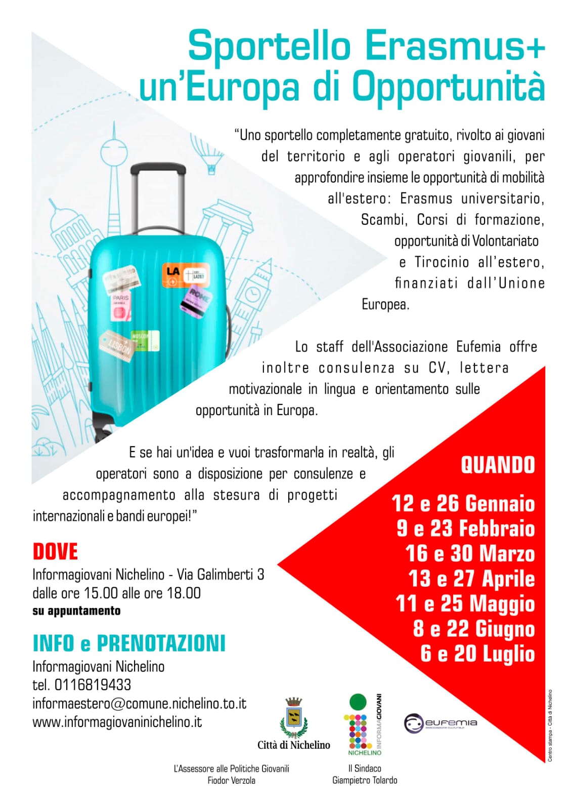 Gestito dall'associazione Eufemia in collaborazione con il Comune, offre orientamento e consulenza sulle opportunità di mobilità all'estero, Erasmus universitari, scambi, corsi di formazione e opportunità di volontariato, e tirocini all'estero finanziati dall'Unione Europea. Inoltre offre consulenza gratuita su curriculum vitae e lettere motivazionali in lingua, insieme a consulenza e accompagnamento alla stesura di progetti internazionali e di bandi europei.