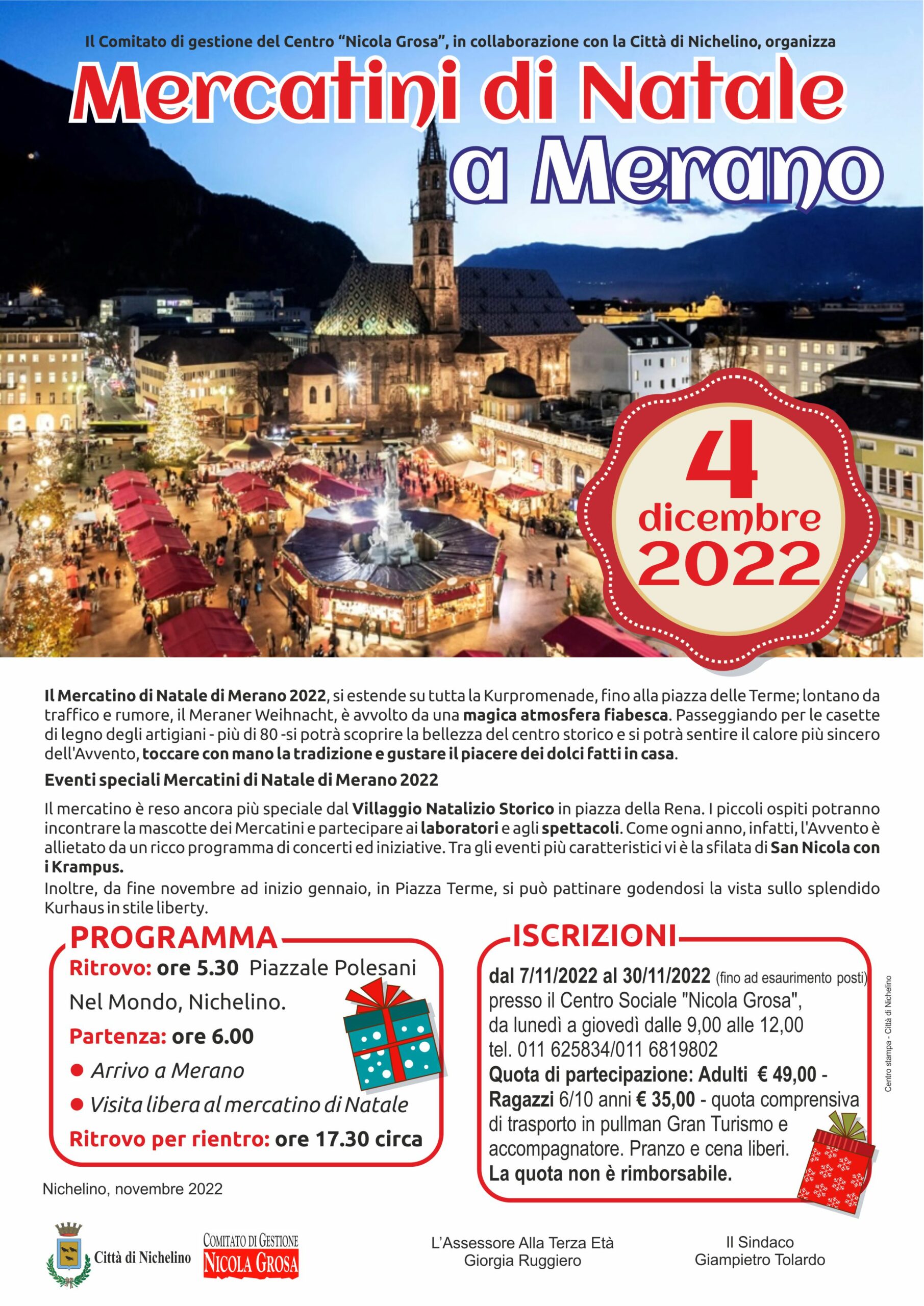 Iscrizioni aperte da oggi, lunedì 7 novembre e fino al 30 novembre, per partecipare alla gita a Merano in occasione dei Mercatini di Natale.