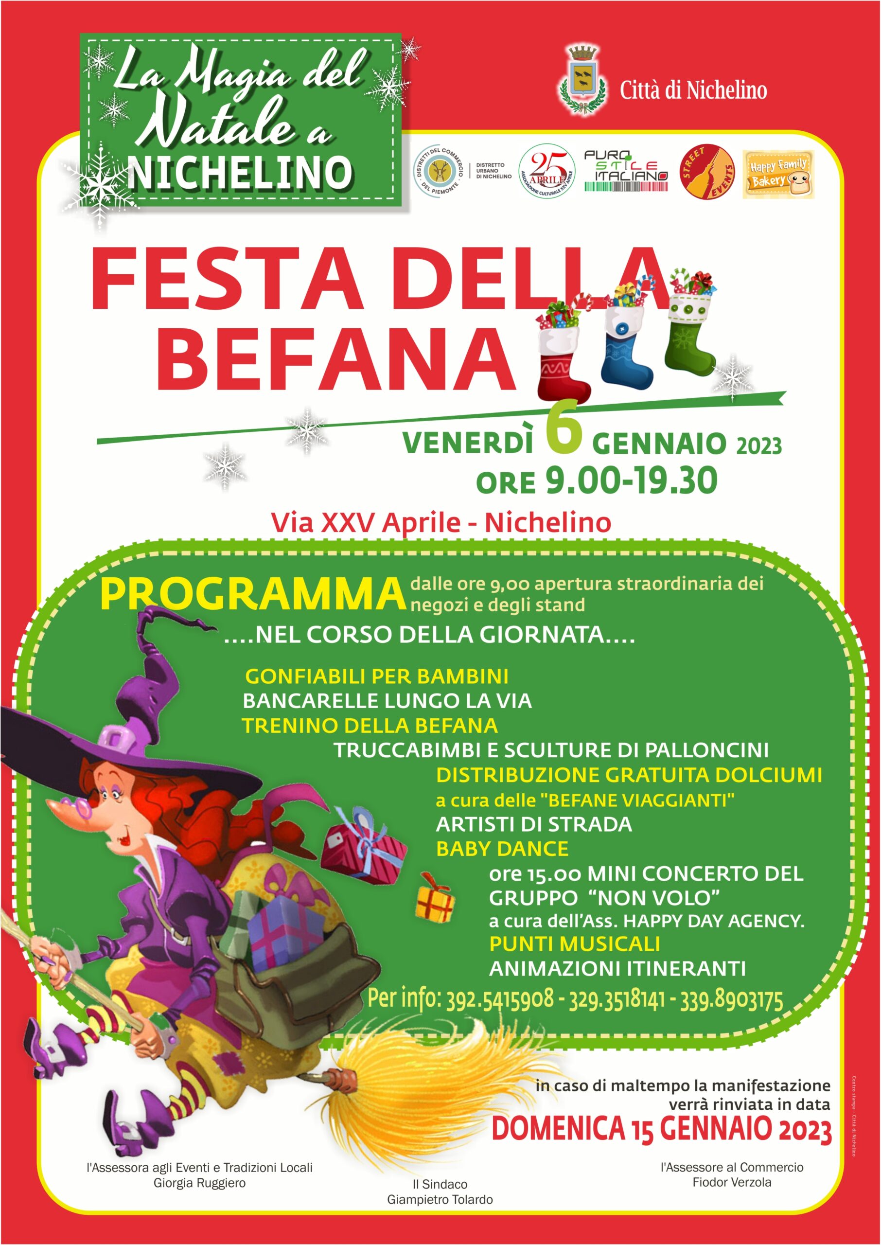 • distribuzione gratuita di dolci a cura delle "Befane viaggianti";