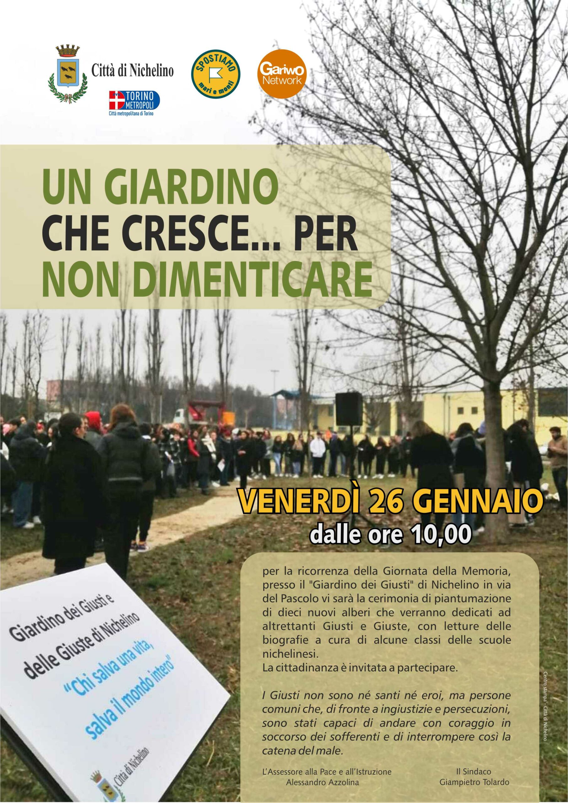 Anche quest'anno Nichelino dedica il Giorno della Memoria al "Giardino dei Giusti".