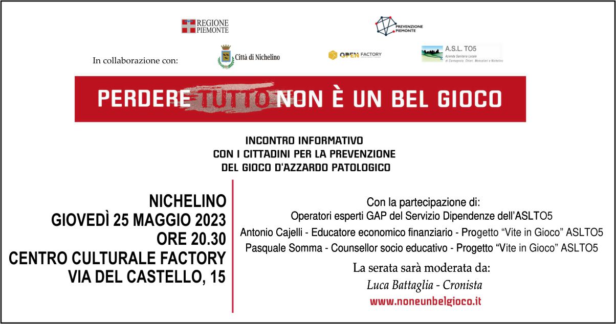 Interverranno: operatori esperti GAP del Servizio Dipendenze dell’Asl To5, Antonio Cajelli - Educatore economico finanziario - Progetto “Vite in Gioco” Asl To5 e Pasquale Somma - Counsellor socio educativo - Progetto “Vite in Gioco” Asl To5.