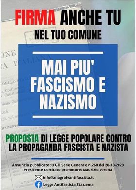 Possibilità di firmare la proposta di legge popolare contro la propaganda fascista e nazista