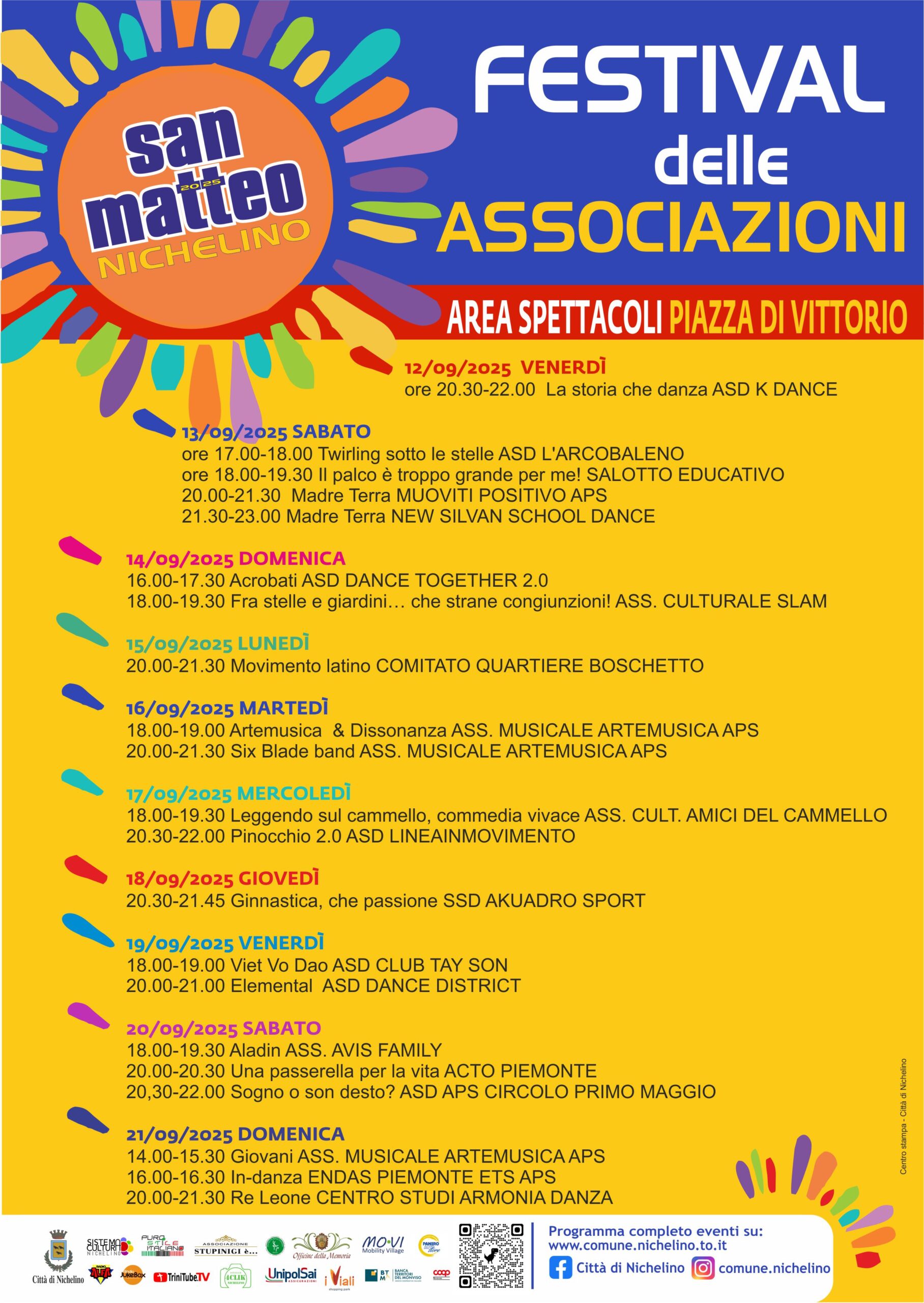 • dalle 18.00 FESTIVAL ASSOCIAZIONI: musica, danza, sport e cultura