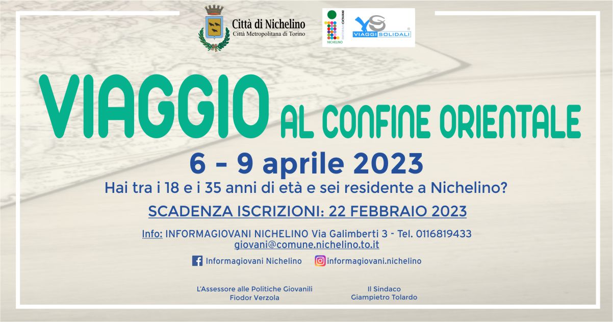 L’Assessorato alle Politiche Giovanili della Città di Nichelino promuove e sostiene il progetto “VIAGGIO AL CONFINE ORIENTALE: STORIA E MEMORIA PUBBLICA DEL NOVECENTO”: un progetto rivolto ai giovani cittadini di età compresa tra i 18/35 anni e residenti in Nichelino orientato alla valorizzazione, sensibilizzazione e informazione sui temi delle violenze al confine orientale e l’esodo ed esuli del Piemonte nel corso del XX secolo, comprendente un viaggio per approfondire i temi legati alla guerra, alle politiche di confine e agli spostamenti forzati della popolazione.