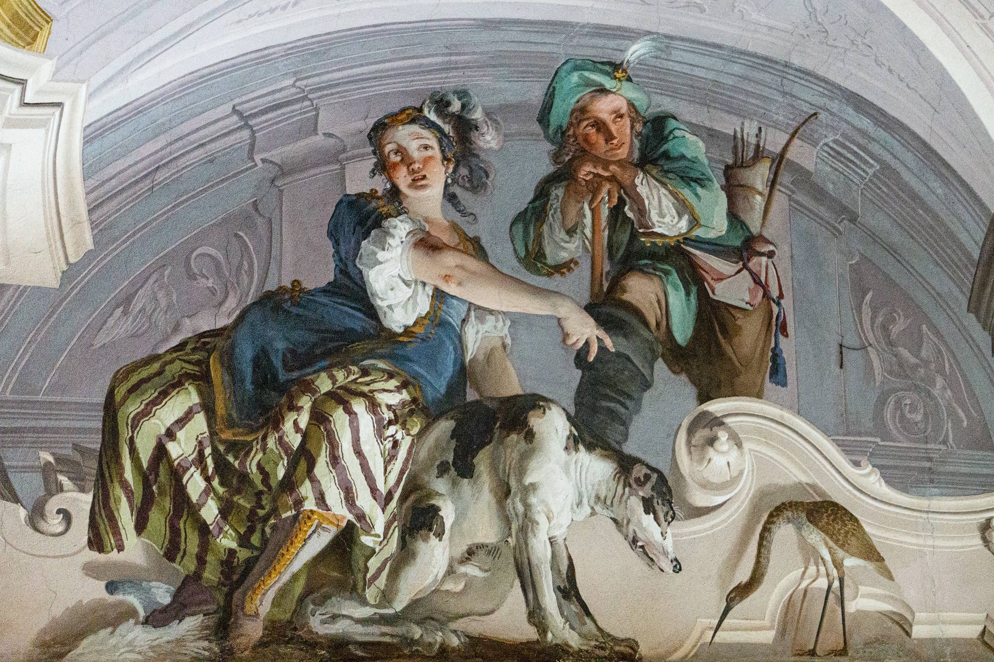 Così come accade nel salone centrale, gli appartamenti reali custodiscono il racconto in pittura delle storie di Diana cacciatrice, vestale della castità e della fedeltà.