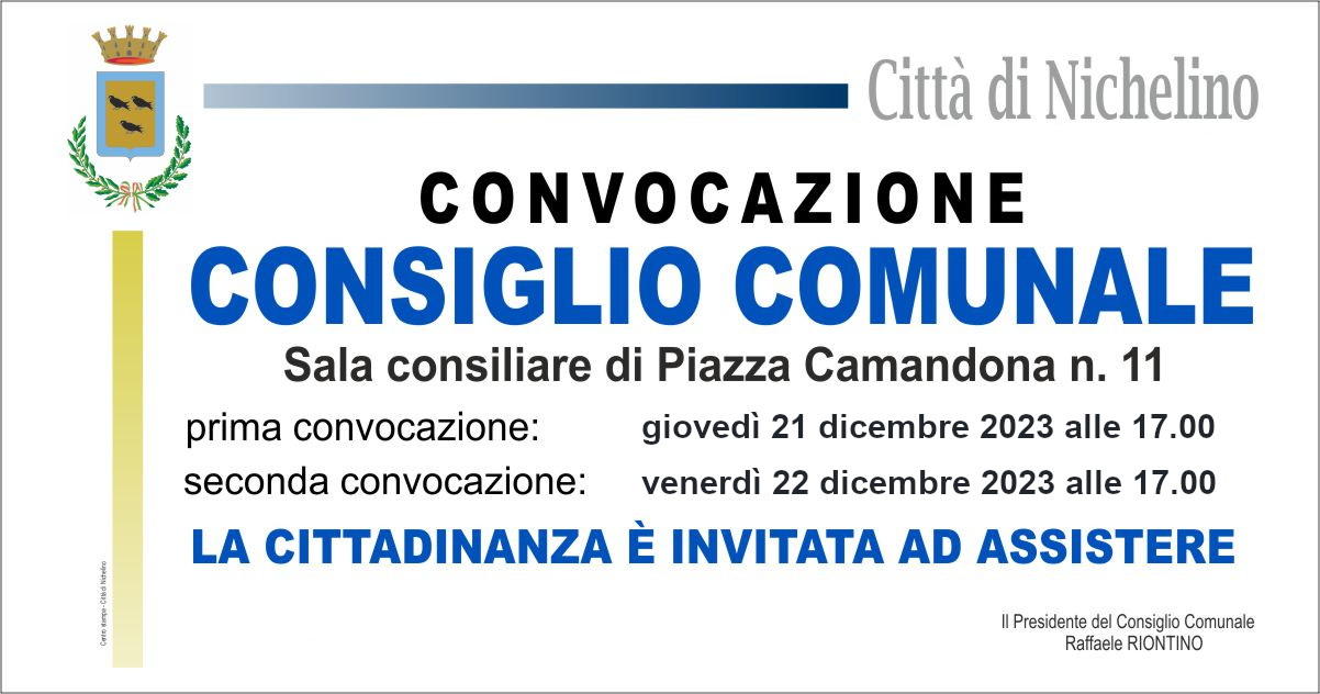 Convocazione Consiglio Comunale – 21 dicembre 2023