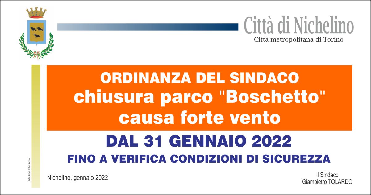 Ordinanza del Sindaco: chiusura parco “Boschetto” causa forti raffiche di vento