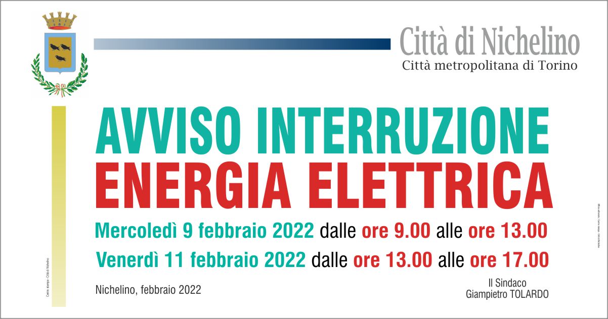 Avviso Interruzione energia elettrica: 9 e 11 febbraio 2022
