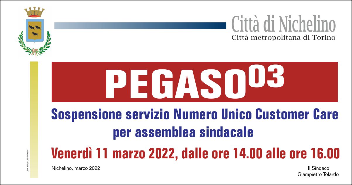 Pegaso 03. Avviso sospensione Numero Unico Customer Care