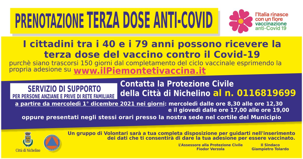 Vaccino anti-covid19 – Supporto alla prenotazione della terza dose