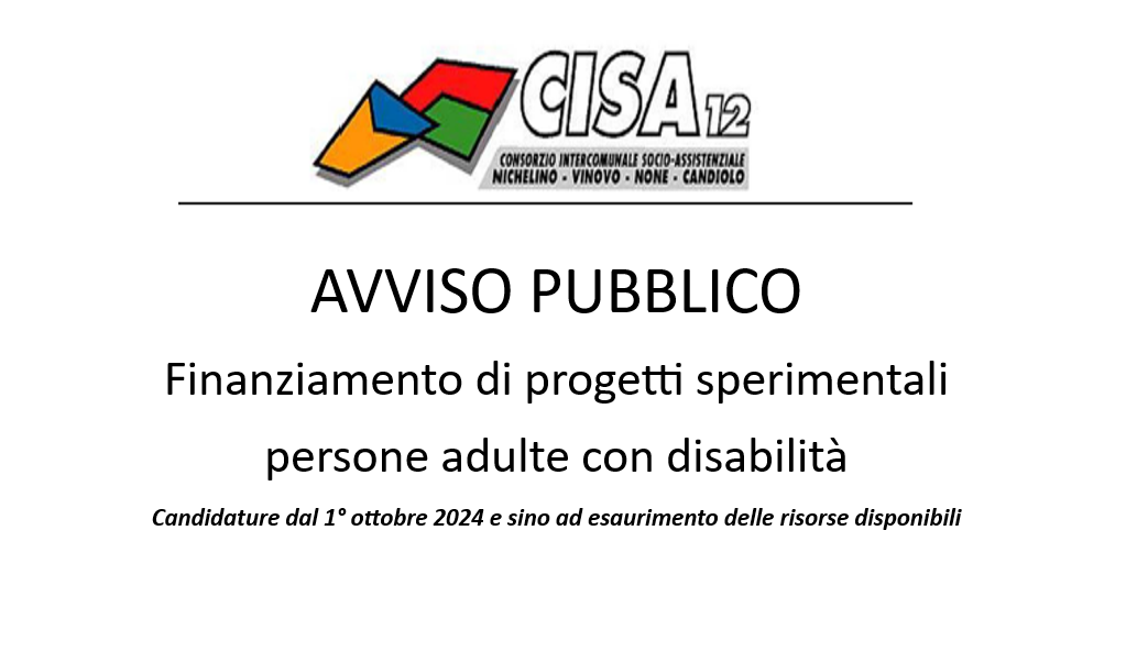 Avviso pubblico "Finanziamento di progetti sperimentali per la vita indipendente e l'inclusione nella società di persone adulte con disabilità"