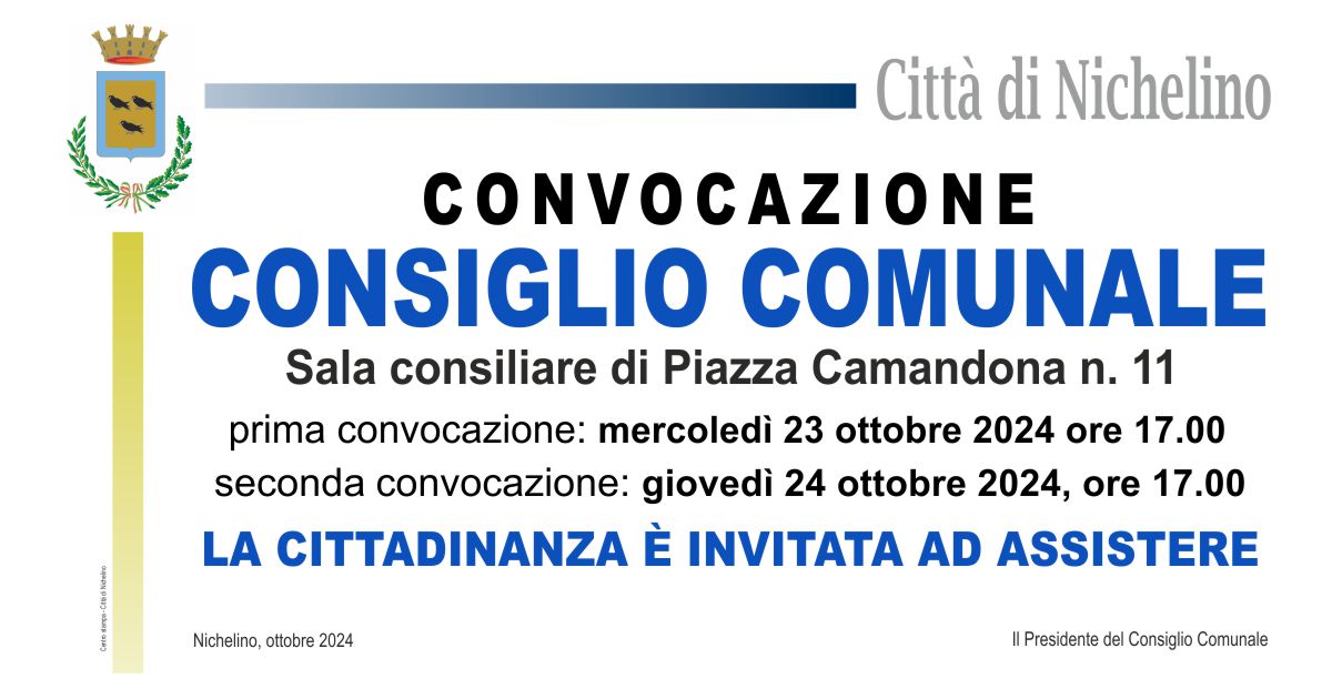 Convocazione Consiglio Comunale – 23 ottobre 2024